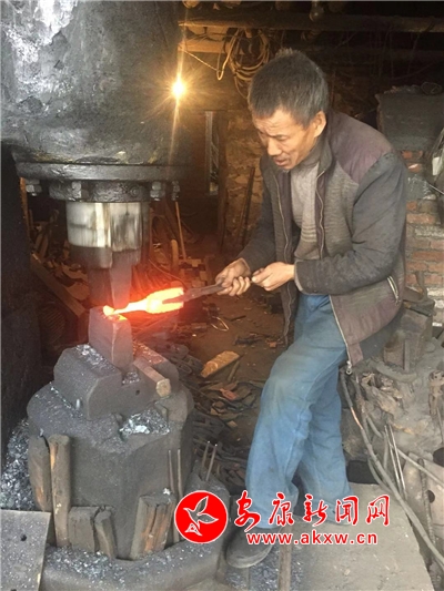 回去休息了幾天,黃師傅又操起了鐵錘。他說:“現(xiàn)在年輕人都不愿意干,張灘老一輩的鐵匠沒有一位后人從事這個(gè)行當(dāng)了。等我們這幾個(gè)老家伙干不動(dòng)了,鐵匠這個(gè)手藝就失傳了……”