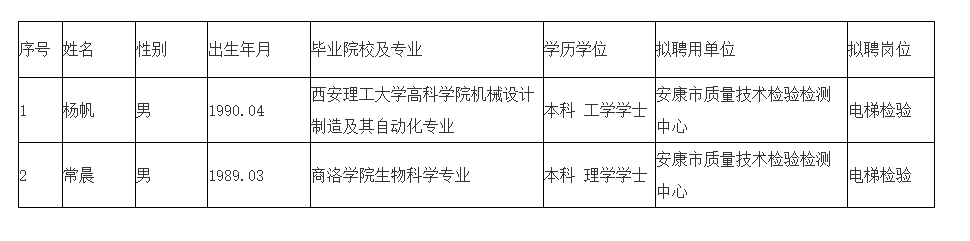 附件:安康市質量技術監(jiān)督局2018年公開招聘緊缺特殊人才擬聘用人員匯總表