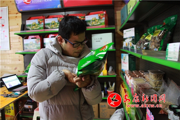 苦心人,天不負(fù)。在培訓(xùn)期間結(jié)識(shí)的朋友,多次幫助張龍海。愛心人士趙安康、寇玉軍不僅在生活上施以援助,為他送去擋風(fēng)簾、電熱毯等物資,而且?guī)退跐h濱區(qū)果園小區(qū)開設(shè)了一個(gè)土特產(chǎn)實(shí)體店。前期張龍海不需要投資,由趙安康幫他進(jìn)貨、補(bǔ)貨,張龍海只需對(duì)產(chǎn)品進(jìn)行市場(chǎng)調(diào)研,根據(jù)行情出售各類農(nóng)產(chǎn)品。他活學(xué)活用自己所學(xué)的電商知識(shí),不僅在線下拓展市場(chǎng),還在線上電商平臺(tái)創(chuàng)建了商鋪。