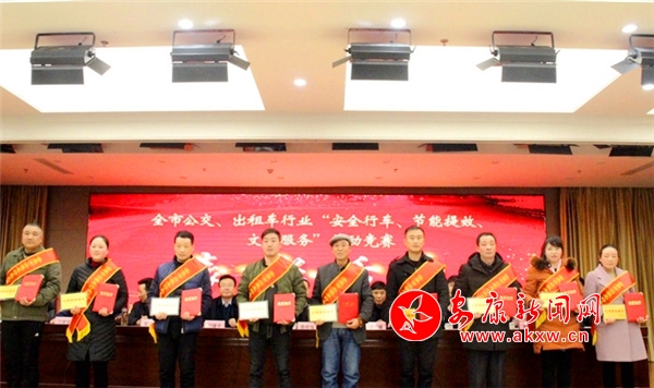 安康新聞網(wǎng)訊(記者 鄭運(yùn)祥)1月25日下午,市交通運(yùn)輸局、市總工會(huì)聯(lián)合舉辦全市公交、出租車行業(yè)“安全行車、節(jié)能提效、文明服務(wù)”勞動(dòng)競(jìng)賽表彰活動(dòng),50名公交車駕駛員、45名出租車駕駛員被授予安康市公交、出租車行業(yè)“文明服務(wù)標(biāo)兵”榮譽(yù)稱號(hào),并接受表彰。市委常委、副市長(zhǎng)劉建平出席活動(dòng)并講話。