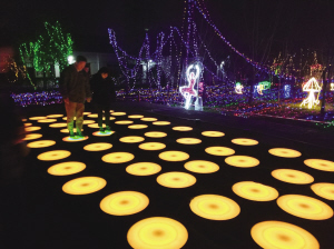 邁入這個流光溢彩的世界,變化莫測的燈光閃爍,恍若穿梭在時光中,驀然回首,那人正在燈火闌珊處。走在“愛情路”上,品味著愛情的甜蜜;徜徉在“財富道”上,憧憬著事業(yè)的輝煌;漫步在“吉祥道”上,祝福著家人的吉祥安康。一路上,各種眼花繚亂撥動著心弦,在音樂跳石上,用腳步彈奏,坐上彎彎的月亮上蕩秋千……
