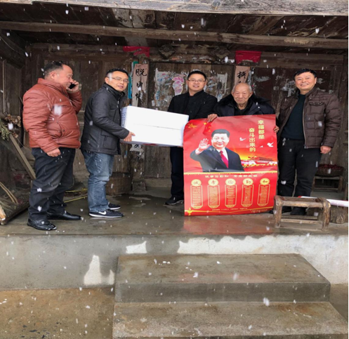 通過1個多小時的跋涉,慰問組成員來到大溝河村14組,下車后,首先映入我們眼簾的是漫山銀裝,地面覆蓋了厚厚的積雪,天空中飄著鵝毛大雪,一位耄耋老人守候在屋檐下,面帶微笑的招呼我們進屋,他就是我們要慰問的王所西老人,老遠(yuǎn)就聽他說:“太感謝你們了,這么大的雪,你們還來給我送東西!”。通過我們與他深入交流,得知老人家的妻子和兩個兒子都已不幸離世,只有他一人獨守老屋,日子過得苦巴巴的,看著老人家獨處的身影和滿意的微笑,我們都禁不住流下了淚水。雖然我們給他送去了一點點慰問品,但在老王心中就是莫大的精神安慰和滿足。