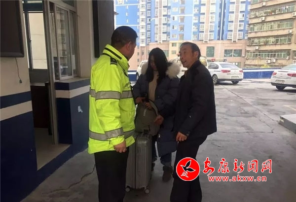 一個(gè)小時(shí)內(nèi),小鄔同學(xué)順利地拿回了行李箱,心中的一塊大石頭終于落了地,連連向熱心交警和駕駛?cè)酥轮x。