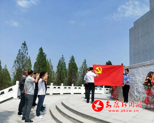 在革命烈士紀念碑前,支部書記康禮峰帶領全體黨員干部面向烈士紀念碑和黨旗莊嚴宣誓,重溫入黨誓詞,不忘入黨初心,增強黨性觀念。深切緬懷革命前輩,感受紅色經典,傳承紅色精神。
