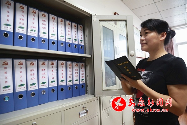 圖為該段標(biāo)準(zhǔn)化主管人員在檢查科室文件柜
