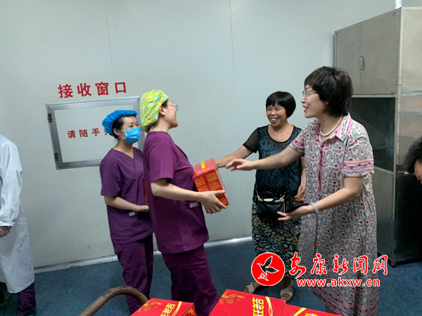 8月2日上午,醫(yī)院紀(jì)委書記杜海云、工會(huì)主席王小麗、門診部主任馬吉香一行三人帶著院領(lǐng)導(dǎo)的深切關(guān)懷,深入到醫(yī)療一線的各科門診、后勤一線的門衛(wèi)崗?fù)、鍋爐房、消毒供應(yīng)中心等高溫部門以及高新醫(yī)院、傳染病院和精神病院,開展“夏日送清涼”活動(dòng)。