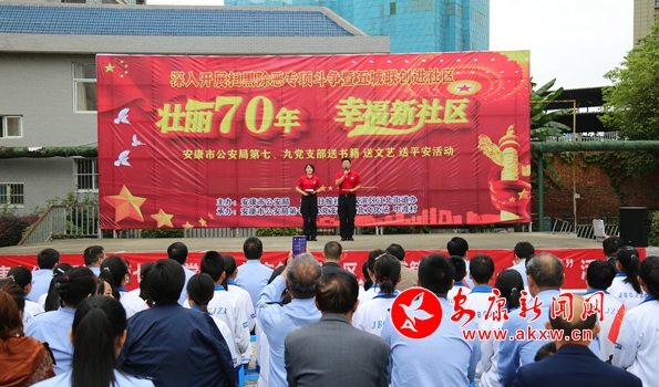 本網(wǎng)訊 (通訊員 周瑞儒)壯麗70年,幸福新社區(qū)。在新中國成立70周年即將來臨之際,9月21日上午,市公安局機關(guān)第七、第九黨支部深入漢濱區(qū)江北辦事處中渡社區(qū),開展掃黑除惡專項斗爭暨“五城聯(lián)創(chuàng)”進(jìn)社區(qū)“送書籍、送文藝、送平安”活動。市公安局、市創(chuàng)建辦、安康日報社、江北街道辦事處相關(guān)負(fù)責(zé)人,市公安局機關(guān)第七、第九黨支部全體民警輔警,市公安局創(chuàng)建辦、漢濱分局江北派出所負(fù)責(zé)人,江北高級中學(xué)學(xué)生代表、社區(qū)群眾200余人參加活動。