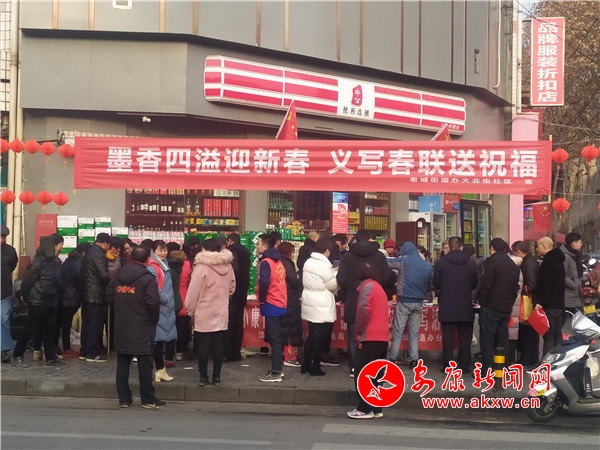 本網(wǎng)訊(通訊員 林超)為弘揚民族文化、豐富居民群眾文化生活,營造歡樂文明、喜慶祥和的節(jié)日氛圍,1月17日大北街社區(qū)黨支部邀請書法愛好者在大北街開展“萬副春聯(lián)進社區(qū)”義寫春聯(lián)活動。社區(qū)包聯(lián)領(lǐng)導、轄區(qū)包聯(lián)單位、文廣站及居民200余人參加此次文化活動。