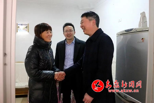 1月17日一大早,老董家便迎來了一波客人——江北街道辦主任向陽、萬家實業(yè)有限公司董事長方榮波、江北慈善協(xié)會一行。“老董長期生病臥床不起,孩子在外面打零工幫不了忙,生存壓力也大。”慰問團一行和董夫人聊病情,聊生活情況,了解到孩子就業(yè)情況后,更是忙不迭地向熟悉的企業(yè)打聽著合適崗位。捏著方榮波送上的500元慰問金,看著向陽為自己家孩子忙活的勁兒,聽著大伙兒的一句句關(guān)切鼓勵,董夫人一臉感激,皺了許久的眉頭終于舒展開來。