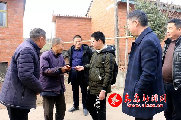 早晨到下午,慰問的足跡從后張嶺社區(qū)到劉家溝村、李家嘴村。發(fā)小生態(tài)農(nóng)業(yè)開發(fā)有限公司董事長蔡樹成也加入愛心隊伍中來,將新年紅包、關(guān)心祝福帶到了周發(fā)銀、劉潤明、李貴新等一戶戶困難家庭中,暖到了他們的心坎里。