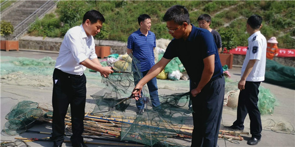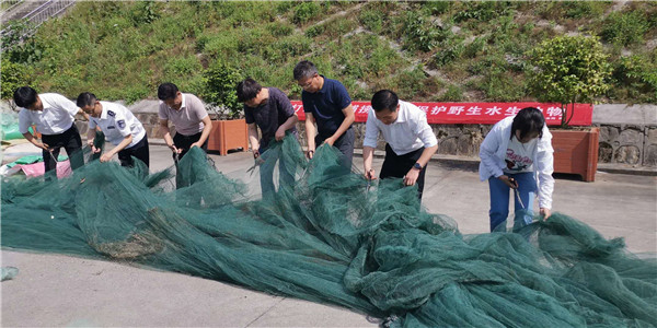 5月22日上午,陜西省農(nóng)業(yè)農(nóng)村廳漁業(yè)漁政局、安康市農(nóng)業(yè)農(nóng)村局在瀛湖海事碼頭聯(lián)合開展禁用漁具及“三無”漁船銷毀活動(dòng),集中銷毀了570余副“絕戶網(wǎng)”共1萬余米,銷毀電魚設(shè)備21套。