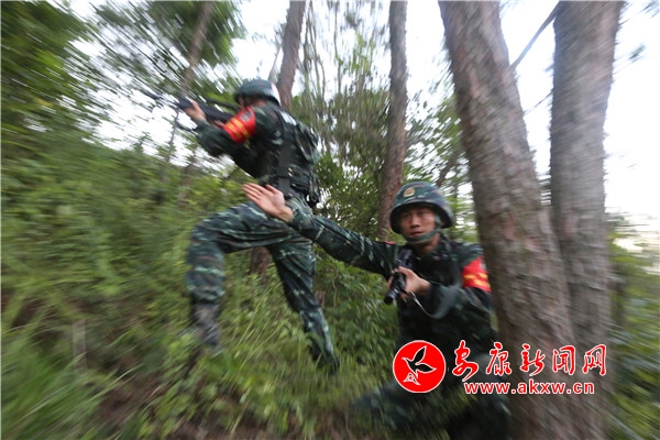 本網(wǎng)訊(通訊員 趙坤)“接上級(jí)通報(bào),3號(hào)區(qū)域發(fā)現(xiàn)4名可疑分子蹤跡,上級(jí)要求你特戰(zhàn)分隊(duì)迅速追擊,予以殲滅!”連日來(lái),武警陜西總隊(duì)第二片區(qū)魔鬼周極限訓(xùn)練在安康地域展開。山地追擊現(xiàn)場(chǎng),特戰(zhàn)隊(duì)員面對(duì)山林地的特殊地形,沖山坡、穿毒障、鉆密林,觀察地面踩踏的痕跡、潛聽樹林中的動(dòng)靜,采取多種戰(zhàn)法靈活應(yīng)對(duì)。