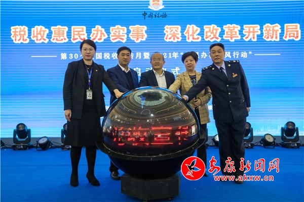 本網(wǎng)訊(通訊員 付明明 張小松)春風(fēng)拂面,稅意暖心。4月1日上午,安康高新區(qū)萬達(dá)廣場內(nèi),在安康市稅務(wù)局聯(lián)合高新區(qū)稅務(wù)局和金融、企業(yè)代表共同舉辦的第30個全國稅收宣傳月暨2021年“便民辦稅春風(fēng)行動”啟動儀式上,隨著安康市稅務(wù)局局長張大峰、高新區(qū)管委會副主任楊凱,安康市稅務(wù)局總會計(jì)師汪顯鳳,高新區(qū)稅務(wù)局局長呂世意和安康萬達(dá)廣場商業(yè)管理有限公司總經(jīng)理田玲共同按動啟動球,以“稅收惠民辦實(shí)事、深化改革開新局”為主題的稅收宣傳月活動正式開啟。