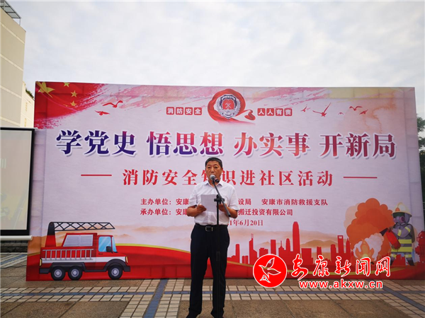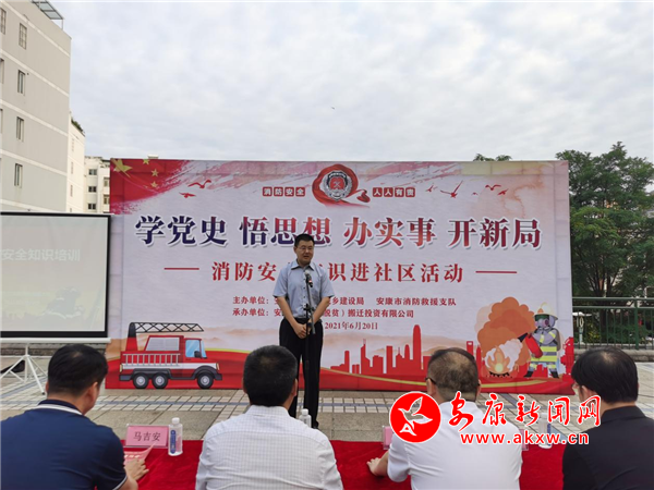 本網(wǎng)訊(通訊員 向橋)6月20日,“學(xué)黨史 悟思想 辦實(shí)事 開新局,消防安全知識進(jìn)社區(qū)”宣講活動啟動儀式在山水上城小區(qū)啟動。市住建局(市人防辦)副局長(副主任)段平安出席會議并講話,市移民搬遷公司副總經(jīng)理宋國卿致辭,市消防救援支隊(duì)、市移民搬遷公司和社區(qū)、小區(qū)居民60余人參加活動。