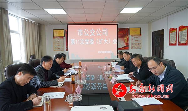 本網(wǎng)訊(通訊員 成忠旭)10月28日,市公交公司召開(kāi)第十一次黨委(擴(kuò)大)會(huì),認(rèn)真學(xué)習(xí)習(xí)近平總書(shū)記來(lái)陜考察重要講話(huà)重要指示精神,研究貫徹落實(shí)措施。領(lǐng)導(dǎo)班子成員、有關(guān)部門(mén)負(fù)責(zé)人參加會(huì)議。