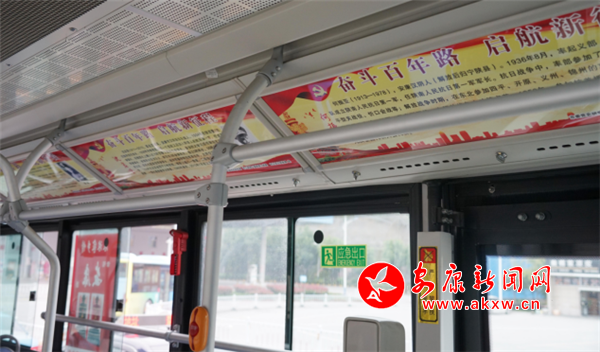 市公交公司黨委利用公交車(chē)流動(dòng)性強(qiáng)、宣傳面廣的優(yōu)勢(shì),精心打造黨史學(xué)習(xí)教育移動(dòng)課堂和大眾學(xué)讀基地。黨史學(xué)習(xí)教育移動(dòng)課堂以7路、12路和13路3條公交線(xiàn)路為核心,在40輛公交車(chē)內(nèi)安裝400塊宣傳展板,主要展示安康紅色革命故事和典型人物事跡等內(nèi)容,讓乘客在乘車(chē)途中隨時(shí)隨地學(xué)黨史,打通黨史學(xué)習(xí)教育“最后一公里”。黨史學(xué)習(xí)教育大眾學(xué)讀基地以安康火車(chē)站公交首末站為核心,在護(hù)欄上安裝20余塊學(xué)習(xí)展板,便于乘客候車(chē)、職工休息時(shí)學(xué)習(xí)黨史,推動(dòng)黨史學(xué)習(xí)教育融入生活、融入日常。