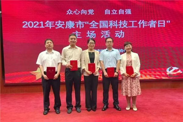 醫(yī)院優(yōu)秀科研人才在2021年安康市“全國科技工作者日”主場活動領獎