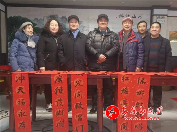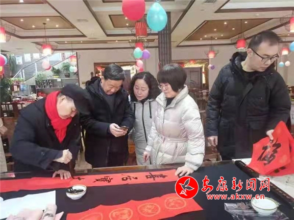 本網(wǎng)訊(通訊員 田虹)瑞雪紛飛,臘月尤寒。自1月20日至26日,安康市延安精神研究會(huì)組織部分會(huì)員采取集寫分送或分寫集送的方式,先后為安康市亦合安企業(yè)管理有限公司、平利縣新立人力資源管理公司、嵐皋縣瀛湖漢源漁業(yè)公司等會(huì)員單位及職工,神河鎮(zhèn)敬老院及街道社區(qū)群眾送春聯(lián)送溫暖。一幅幅鮮紅的楹聯(lián)為即將來(lái)臨的虎年春節(jié)增添了濃濃暖意。