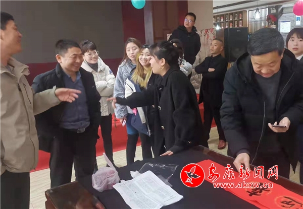 1月22日下午研究會(huì)一行來(lái)到平利縣新立人力資源公司,現(xiàn)場(chǎng)為企業(yè)職工擬聯(lián)即書,并開展聯(lián)誼活動(dòng)。"山安水安人自安,天安地安亦合安";“牛存厚德辭舊歲,虎振雄風(fēng)迎新立”“春臨化龍千山秀,福至女媧萬(wàn)木春”……結(jié)合實(shí)際自擬聯(lián)語(yǔ),深受歡迎。