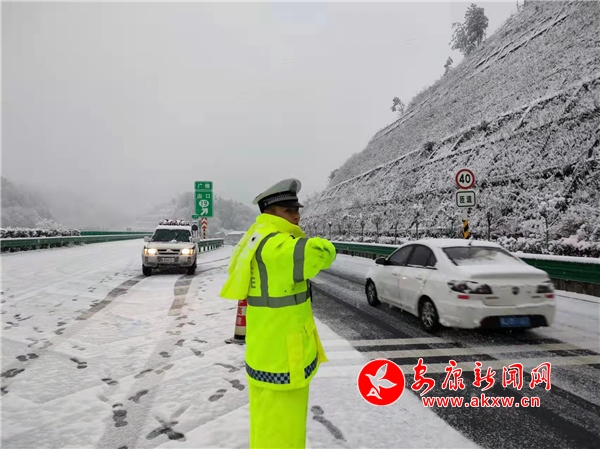 1月28日,我市普降雨雪,部分路段出現(xiàn)大霧、積雪。為有效應(yīng)對(duì)惡劣天氣對(duì)交通安全的影響,安康交警以雪為令,全警動(dòng)員,強(qiáng)化惡劣天氣下的道路交通管控、巡查、事故預(yù)防、保暢通等措施,確保轄區(qū)道路安全暢通和群眾平安出行。(周瑞儒/圖文)FZx安康新聞網(wǎng)