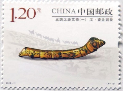 2018年5月19日,國家郵政局發(fā)行了“鎏金銅蠶”特種郵票。