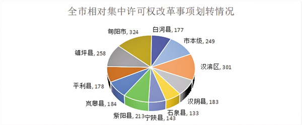 一是相對(duì)集中行政許可權(quán)改革取得階段性成果。按照省市相對(duì)集中行政許可權(quán)改革工作統(tǒng)一部署,2021年度市級(jí)249項(xiàng)、11個(gè)縣(市區(qū)、高新區(qū))共2094項(xiàng)行政許可事項(xiàng)劃轉(zhuǎn)至同級(jí)行政審批服務(wù)局集中實(shí)施。按照“減環(huán)節(jié)、減時(shí)限、減材料、減跑路次數(shù)”的原則,對(duì)劃轉(zhuǎn)事項(xiàng)進(jìn)行流程再造,審批機(jī)構(gòu)人員從原有14個(gè)部門、43 個(gè)科室、150余名干部減少為1個(gè)部門、4個(gè)科室、14名干部,審批印章從原有20余枚減少為1枚,審批窗口從原有10個(gè)減少為6個(gè),初步實(shí)現(xiàn)審批環(huán)節(jié)減少、審批速度提速、審批成本降低的“一減一提一降”目標(biāo),所有劃轉(zhuǎn)事項(xiàng)審批環(huán)節(jié)、材料減少30%以上,平均提速50%以上,群眾跑路次數(shù)減少40%以上。