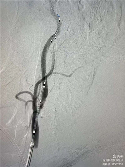 手術(shù)過(guò)程:球囊擴(kuò)張后,protege支架到位