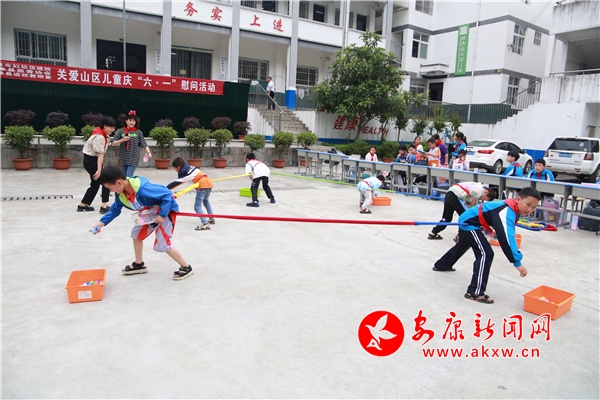捐贈(zèng)儀式結(jié)束后,正溝小學(xué)師生和市婦幼保健院醫(yī)務(wù)人員開展了聯(lián)誼活動(dòng),通過“抓尾巴”、“跳跳袋”、“扭扭樂”、“東西南北跑”等游戲,拉近了師生之間的距離,也讓孩子們體驗(yàn)了游戲的樂趣和童真。孩子們還一起分享了市婦幼保健院為他們帶來的蛋糕,大家在一片歡聲笑語中度過了一個(gè)愉快、難忘的節(jié)日。
