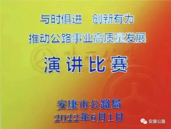 為激勵廣大干部職工積極投身“四個公路”高質量發(fā)展的偉大事業(yè),不負韶華、匯聚動能,弘揚愛崗敬業(yè)、無私奉獻的精神風貌,6月1日,安康市公路局舉辦“與進俱進、創(chuàng)新有為,推動公路事業(yè)高質量發(fā)展”主題演講比賽。