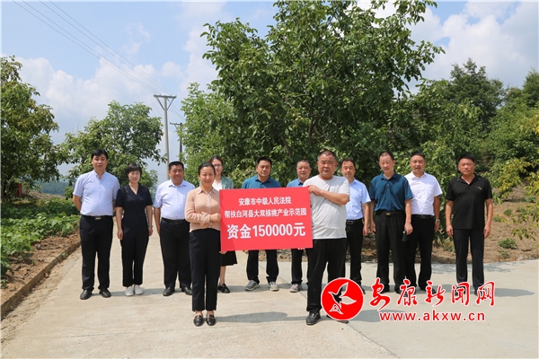 本網(wǎng)訊(通訊員 朱順 張富倉)7月13日,安康中級(jí)人民法院黨組書記、院長劉娟,中院黨組副書記、副院長劉來剛,中院黨組成員、政治部主任羅艷麗一行前往白河縣大雙核桃產(chǎn)業(yè)示范園開展調(diào)研幫扶活動(dòng),并代表中院向該園區(qū)捐贈(zèng)幫扶資金15萬元。