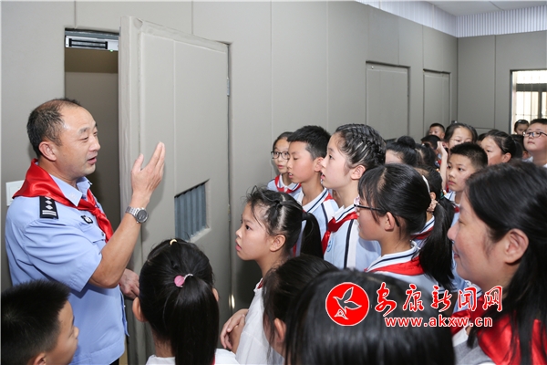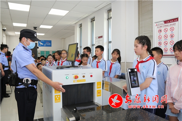 同學(xué)們在法警帶領(lǐng)下,依次經(jīng)過安檢門。更讓同學(xué)們好奇的是法警小哥的警用裝備,同學(xué)們認(rèn)真聆聽法警對每樣警用裝備的講解,還不時(shí)發(fā)問,興趣盎然。隨后,同學(xué)們依次參觀了法庭、羈押室和全國維護(hù)婦女兒童權(quán)益先進(jìn)集體工作室,對法庭開庭審理案件、羈押犯罪嫌疑人和保護(hù)婦女兒童權(quán)益等知識有了更深入的認(rèn)識和了解。