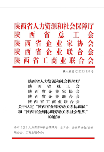 本網(wǎng)訊(通訊員 陳莉)2022年,省協(xié)調(diào)勞動(dòng)關(guān)系三方委員會(huì)在全省范圍內(nèi)廣泛開展“陜西省金牌勞動(dòng)關(guān)系協(xié)調(diào)員”“陜西省金牌協(xié)調(diào)勞動(dòng)關(guān)系社會(huì)組織”評(píng)選活動(dòng)。經(jīng)層層推薦、好中選優(yōu),我市白河縣金龍建材有限公司李東波、高新技術(shù)產(chǎn)業(yè)開發(fā)區(qū)創(chuàng)業(yè)就業(yè)服務(wù)局陳軍等12名同志被認(rèn)定為“陜西省金牌勞動(dòng)關(guān)系協(xié)調(diào)員”,安康市律師協(xié)會(huì)、安康市毛絨玩具行業(yè)協(xié)會(huì)被認(rèn)定為“陜西省金牌協(xié)調(diào)勞動(dòng)關(guān)系社會(huì)組織”。