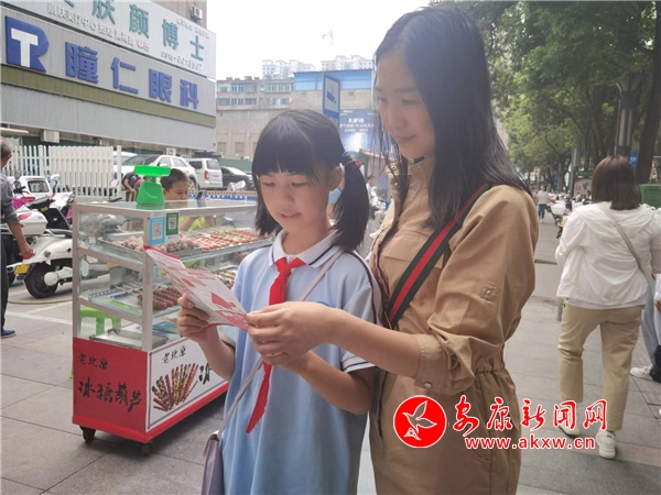 之后,孩子們拿著宣傳冊(cè),進(jìn)入商場(chǎng)、賓館等,向行人、工作人員分發(fā)宣傳冊(cè)。