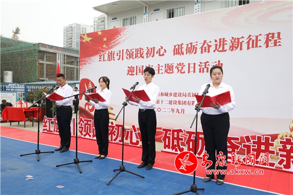 上午9時(shí),活動(dòng)在莊嚴(yán)的升旗儀式中拉開序幕,伴隨著《義勇軍進(jìn)行曲》慷慨激昂的旋律,鮮艷的五星紅旗冉冉升起。在場全體人員面向國旗行注目禮,齊唱國歌,共同祝福偉大祖國更加繁榮昌盛。升旗儀式結(jié)束后,在活動(dòng)現(xiàn)場,開展了紅色朗誦《我的祖國》,市住建局向陜建十二建集團(tuán)捐贈(zèng)“紅色”書籍。同時(shí),市住建局工作人員進(jìn)行了《建設(shè)工程項(xiàng)目管理規(guī)范》《建筑施工現(xiàn)場環(huán)境與衛(wèi)生標(biāo)準(zhǔn)》《 建筑施工高處作業(yè)安全技術(shù)規(guī)范》等城市建設(shè)及建筑行業(yè)規(guī)范宣講;顒(dòng)最后,全體人員合唱《我和我的祖國》,激昂的歌聲將活動(dòng)推向了高潮。