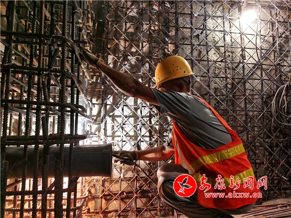在石泉漢江大橋危橋改造工程現(xiàn)場,幾名施工人員正頭戴安全帽或?qū)W⒌亟壴摻,或忙碌地焊接鋼筋,藍色的電弧閃閃發(fā)光,格外刺眼。