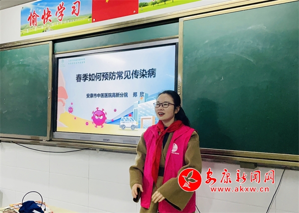捐贈儀式后,安康市中醫(yī)醫(yī)院志愿者在教室內(nèi)開展了知識講座,為學生們講解了春季如何預(yù)防常見傳染病、七步洗手法等知識,孩子們聽得津津有味,并和志愿者積極互動。