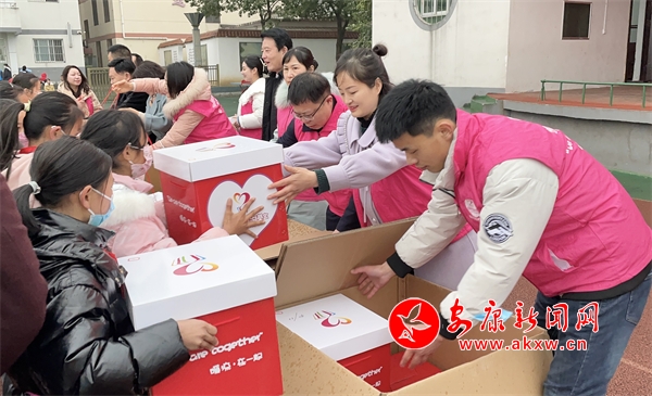 “這里面是新衣服、新鞋!”“哇,足球、跳繩,感謝叔叔阿姨!”操場上,孩子們迫不及待地打開暖流包、體育包禮盒,隨后,紅彤彤的臉上綻放出燦爛笑容。