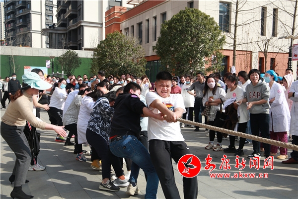 活動由“跳躍歡騰”跳繩比賽和“團結(jié)一心”拔河比賽兩個環(huán)節(jié)組成,現(xiàn)場歡聲笑語,精彩紛呈。在跳繩比賽中,各隊參賽隊員們?nèi)σ愿埃┧筇S,穩(wěn)中求快,忙而不亂,一根大跳繩始終保持圓滑的弧線,連接著團結(jié)與友愛,傳遞著勇氣與力量,演繹著奮斗與拼搏。當拔河比賽的哨聲響起,吶喊聲和喝彩聲點燃了場上每一位隊員的激情,各隊參賽隊員們咬緊牙關(guān),緊握長繩,鉚足力氣,口號一聲響、心往一處想、勁往一處使,棉繩中間紅絲帶不斷左右移動,瞬間將整個活動推到了高潮。經(jīng)過兩個多小時的激烈比拼,行政后勤代表隊獲得跳繩比賽第一名,檢驗科、母嬰康養(yǎng)中心代表隊獲得拔河比賽第一名。