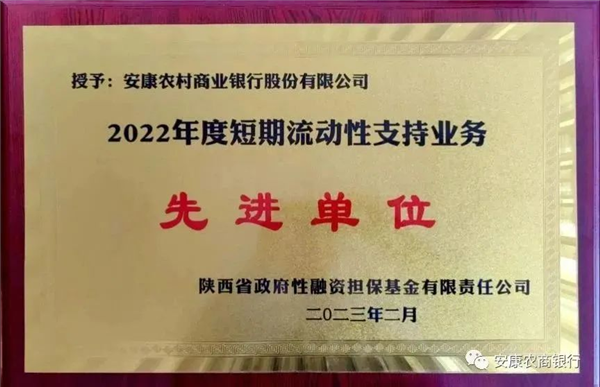 4月12日,安康農(nóng)商銀行喜獲2022年度短期流動性支持業(yè)務先進單位殊榮,安康農(nóng)商銀行黨委副書記、行長被授予2022年度短期流動性支持業(yè)務先進個人表彰。榮譽的取得不僅代表了安康農(nóng)商銀行在短期流動性支持業(yè)務開展及金融助力小微企業(yè)健康發(fā)展方面得到的充分認可,也標志著安康農(nóng)商銀行在穩(wěn)健經(jīng)營、持續(xù)發(fā)展的道路上邁出的又一堅實步伐。