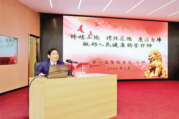 為了進一步深入推進清廉醫(yī)院建設(shè),打造一支政治素質(zhì)高、工作能力強、服務(wù)質(zhì)量優(yōu)、群眾反映好的醫(yī)療衛(wèi)生隊伍,努力營造風(fēng)清氣正、健康向上的政治生態(tài)和干事創(chuàng)業(yè)、擔(dān)當(dāng)作為的良好環(huán)境,醫(yī)院先后于3月16日、4月14日,組織召開了2023年黨建暨黨風(fēng)廉政建設(shè)工作推進會和醫(yī)療領(lǐng)域廉潔購銷暨警示教育廉政談話會。會議動員全員職工,凝聚共識、形成合力,積極踐行“忠誠、干凈、擔(dān)當(dāng)、學(xué)習(xí)、奉獻”工作標(biāo)準(zhǔn),嚴(yán)格落實廉潔從業(yè)“九項準(zhǔn)則”,全心全意為人民看好病、服好務(wù),為在中國式現(xiàn)代化道路上聚力建設(shè)幸福安康凝聚智慧和力量。