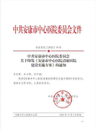 記者:2022年11月2日,安康市中心醫(yī)院黨委印發(fā)了《安康市中心醫(yī)院清廉醫(yī)院建設(shè)實施方案》。今后一個時期,醫(yī)院如何圍繞方案,全面推進清廉醫(yī)院建設(shè),切實把清廉要素融入全方位推動醫(yī)院高質(zhì)量發(fā)展全過程各方面,營造風(fēng)清氣正的政治生態(tài)和良好發(fā)展環(huán)境?