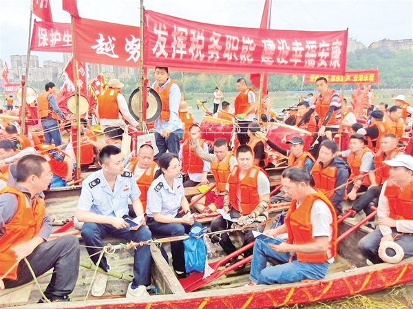 6月20日,漢濱區(qū)稅務(wù)局納稅服務(wù)小分隊(duì)走進(jìn)龍舟節(jié)主會(huì)場,向龍舟隊(duì)員和市民介紹稅費(fèi)征繳政策。陳榮斌 攝hRd安康新聞網(wǎng)