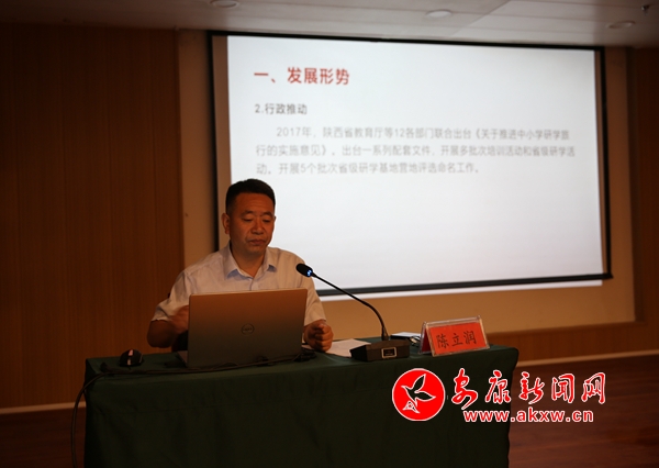 安康市教育學(xué)會(huì)會(huì)長(zhǎng)、安康市大中小學(xué)研學(xué)旅行實(shí)踐教育基地共同體理事長(zhǎng)陳立潤(rùn)作《安康市大中小學(xué)研學(xué)實(shí)踐教育活動(dòng)的探索與思考》專題報(bào)告,報(bào)告圍繞發(fā)展形勢(shì)、亟待解決的問(wèn)題、課程體系建設(shè)、共同體的工作方向四個(gè)方面深入淺出地剖析了安康研學(xué)旅行教育活動(dòng)發(fā)展的現(xiàn)狀及未來(lái)發(fā)展方向。gP7安康新聞網(wǎng)