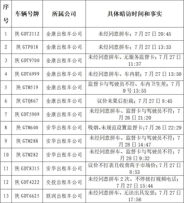 根據(jù)暗訪各出租車公司車輛違章情況進(jìn)行排序h6R安康新聞網(wǎng)