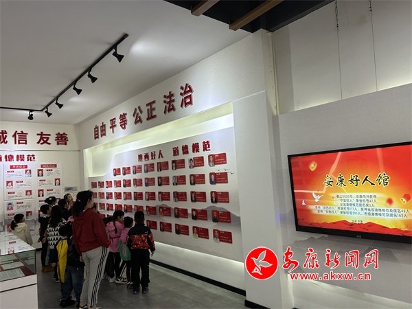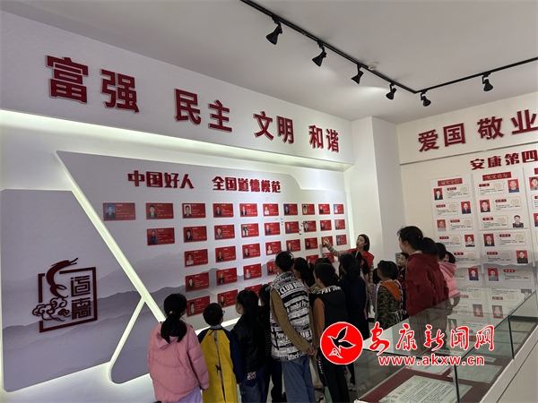 志愿者利用非遺互動墻組織孩子們學(xué)習(xí)《紅軍老祖》的故事,通過文字、圖片以及志愿者的講解讓孩子們直觀了解英雄事跡,了解到“紅軍老祖”這種尊稱背后,寄托著人民群眾對紅軍真誠、淳樸、久遠(yuǎn)的熱愛和懷念。隨后,志愿者帶孩子們參觀“安康好人館”,“安康好人館”分成前言板塊、全國道德模范及中國好人板塊、陜西道德模范及陜西好人板塊、安康道德模范板塊,培養(yǎng)和樹立孩子們“誠實守信”“助人為樂”“孝老愛親”“敬業(yè)奉獻(xiàn)”“見義勇為”的文明意識。最后,志愿者將孩子們帶到書畫展廳,通過參觀、講解的方式,讓孩子們感受傳統(tǒng)文化的藝術(shù)魅力,希望孩子們學(xué)習(xí)藝術(shù)作品的構(gòu)圖、色彩搭配、線條等藝術(shù)手法并運(yùn)用到自己的學(xué)習(xí)當(dāng)中。