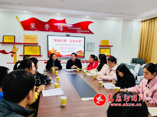 本網(wǎng)訊(通訊員 王國穎)11月30日,安康學(xué)院教育學(xué)院教工第一黨支部與安康市幼兒園黨支部聯(lián)合開展“聯(lián)建共建 互促共進(jìn)”主題黨日活動(dòng)。ryT安康新聞網(wǎng)