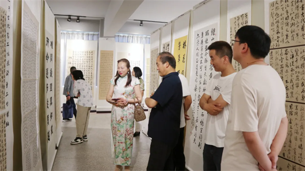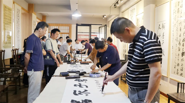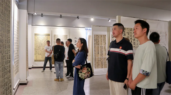 儀式結(jié)束后,全體與會人員共同前往書法展廳參觀,相互交流經(jīng)驗、研討切磋,現(xiàn)場揮毫潑墨,為活動助力添彩。