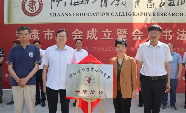 陜西省教育書法研究會名譽會長陳云龍、馬西平,安康市教育體育局黨委書記、局長屈曉紅,安康中學(xué)校長朱平共同為安康分會揭牌。