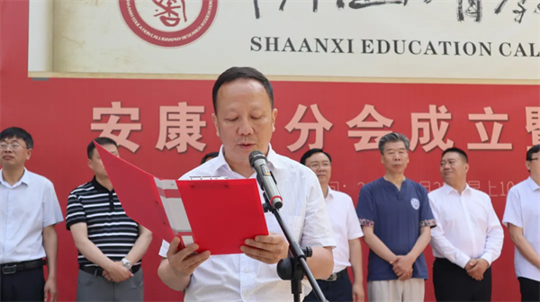 陜西省教育書法研究會常務(wù)副會長兼秘書長馬偉宣讀《關(guān)于成立陜西省教育書法研究會安康分會的批復(fù)》文件。