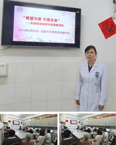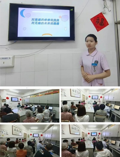 護士長馬運俠以播放癌痛科普視頻的方式,通過臨床疼痛案例深入淺出地將癌痛防治知識分享給大家,現(xiàn)場與患者進(jìn)行了“話療”,消除他們的緊張情緒,幫助他們樹立抗擊癌痛的信心,科學(xué)的防癌抗癌,受到患者及家屬的一致好評。